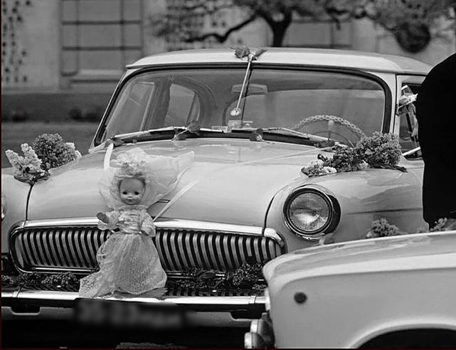 У советских кукол была еще одна очень важная и почетная роль. Кукла, одетая в красивое платье, часто была традиционным украшением свадебного экипажа, древним славянским оберегом, символом женской мудрости и семейного счастья. А свадеб в СССР играли много.