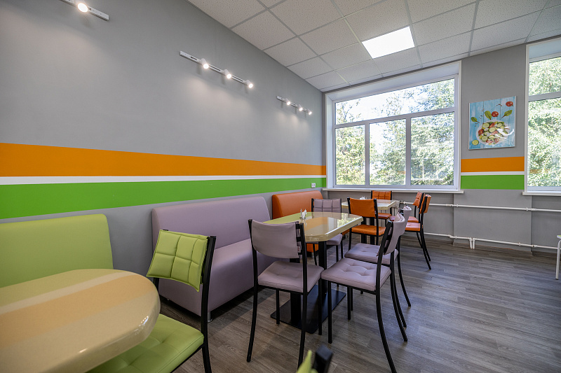 В школе № 35 Первомайского района отремонтировали пищеблок и столовую. За короткие сроки строители привели помещение в порядок: обновили электрооборудование и сантехнику, отремонтировали потолочную систему, уложили кафель, произвели покраску стен и отремонтировали зону приготовления и обеденный зал. Теперь помещение выглядит не просто как школьная столовая, а как уютное кафе. Также, благодаря программе модернизации, администрация школы закупила новую мебель: мягкие диваны, обеденные столы и стулья, а также яркие познавательные плакаты. Учителя отмечают, что это место теперь является для школьников любимым.