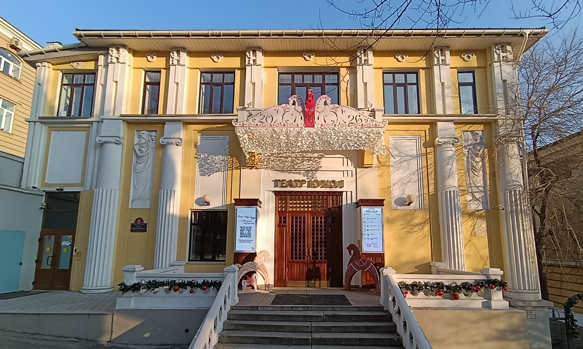 «Музыкальный театр» был построен в 1915 году. Восточная часть здания, обращённая к остановке «Лазо», заметно шире и выше – именно там располагалась сцена и гримёрные комнаты.