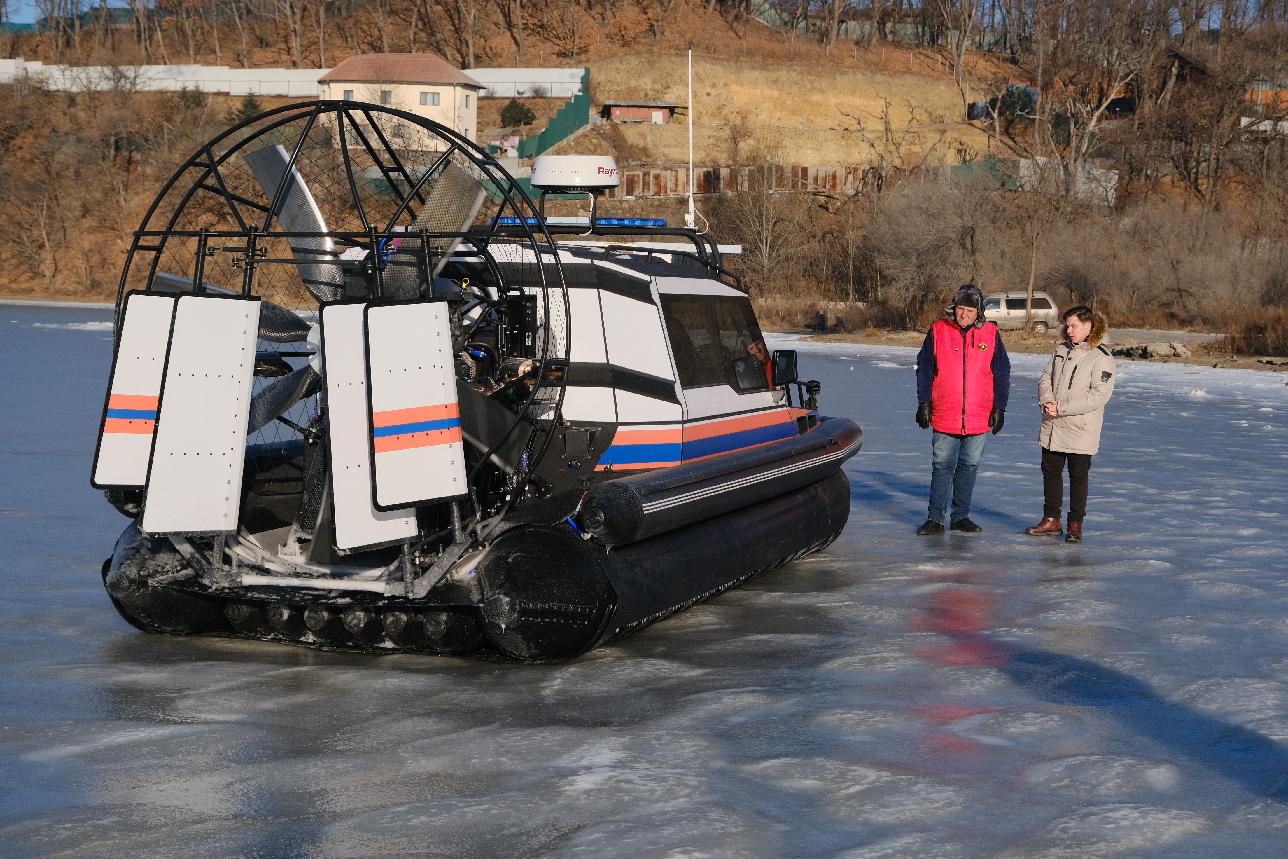 Мы побеседовали с капитаном, для того чтобы узнать о возможностях необычного судна. Он объяснил нам, что основная задача аэролодки – это экстренное реагирование там, где бессильна любая другая техника.